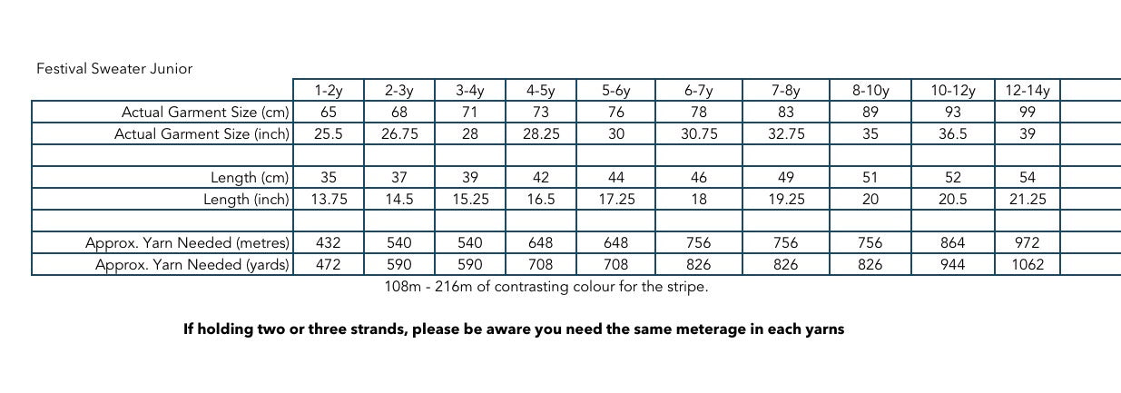 The Festival Sweater is worked from the top down. The neck edge is folded and knitted together and short rows are worked to shape the neckline. After this, increases are worked evenly distributed down the circular yoke. The stripes are worked in a technique which creates small bobbles.