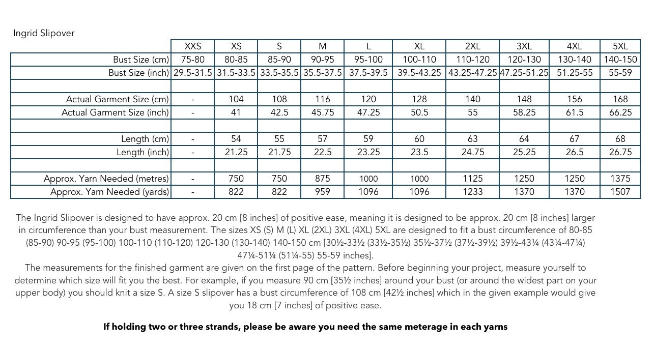 The Ingrid Slipover is worked from the top down in a knit and purl texture pattern. First, the back yoke is worked back and forth and the sloping shoulders are shaped using short rows. Then stitches are picked up and knitted for the shoulders, which are worked separately and then joined to form the front yoke. The front and back yoke are joined at the forearms to form the body, which is worked straight down in the round. Rib edges are worked along the armhole openings and at the neck. The Ingrid Slipover is worked in a texture pattern, which consists of three different pattern sections, each one separated by an eyelet section.