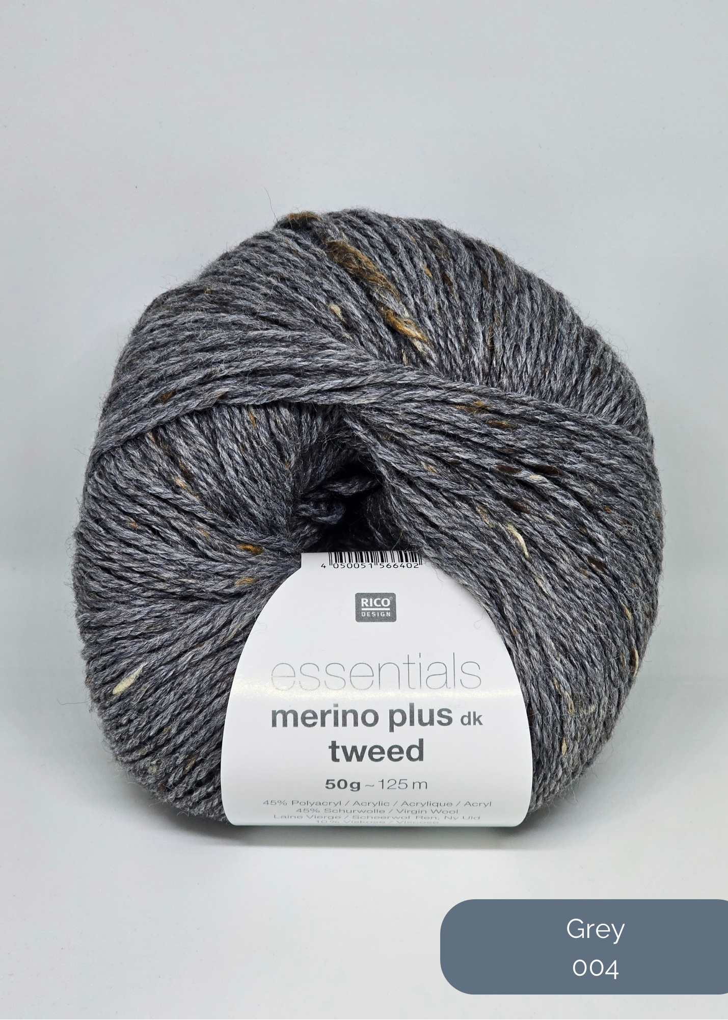 Essentials Merino Plus Tweed dk yarn from Rico Design is a classic tweed yarn that creates knitwear with an even stitch structure. The tweed nubs give the stitch structure a rustic look.